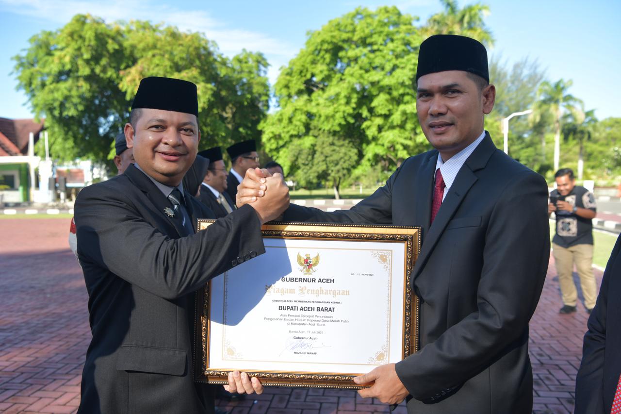 MEDIASATU | BANDA ACEH — Kabupaten Aceh Barat kembali menorehkan prestasi di bidang perkoperasian. Pada peringatan Hari Koperasi ke-78 tingkat Provinsi Aceh yang digelar di halaman Kantor Gubernur Aceh, Kamis (17/7/2025), Aceh Barat berhasil meraih piagam penghargaan atas keberhasilan menuntaskan badan hukum koperasi tercepat.