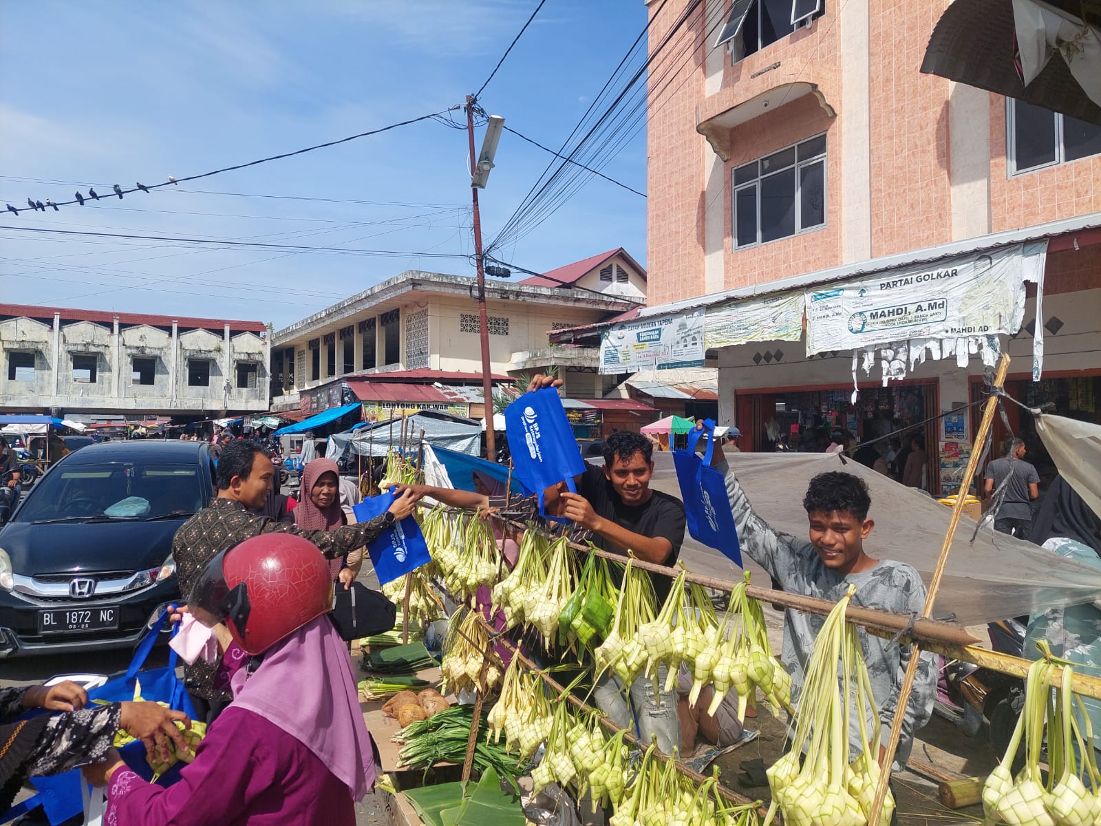 Uniknya, kegiatan ini juga dikolaborasikan dengan tradisi meugang masyarakat Aceh menjelang Idul Adha, di mana antusiasme masyarakat berbelanja di pasar meningkat tajam. Momentum tersebut dimanfaatkan BPJAMSOSTEK untuk menyapa masyarakat sekaligus memberikan edukasi agar mulai menggunakan tas ramah lingkungan saat berbelanja.