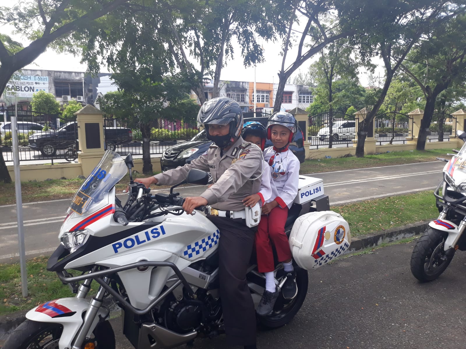 Selesai mengikuti lomba, anak-anak diberikan kesempatan untuk jalan-jalan naik mobil dan sepeda motor patroli Ditlantas untuk berkeliling.